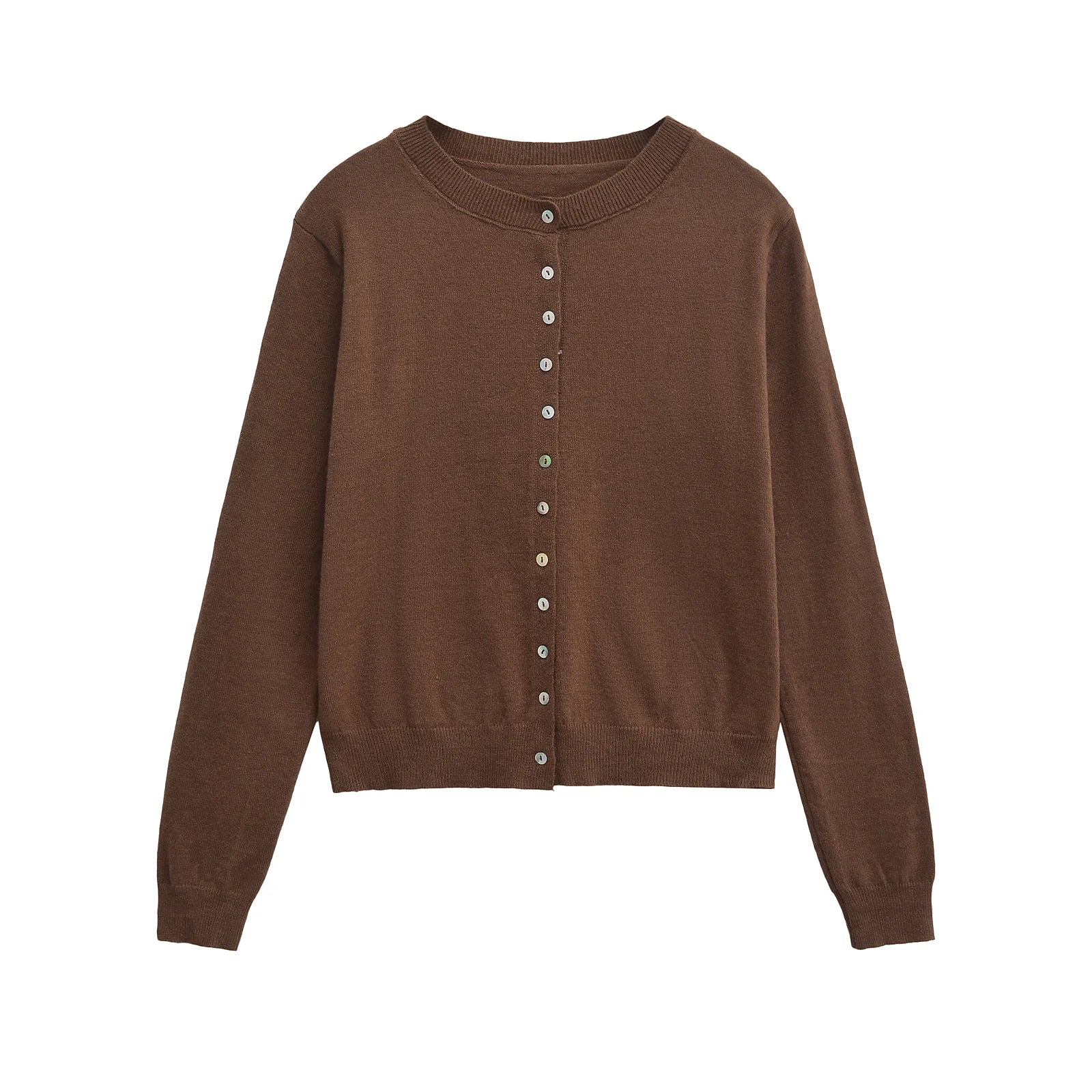 Cette cardigan courte à manches longues, conçue en tricot polyester légèrement extensible, offre une coupe standard avec un col rond classique. Idéale pour l’automne, elle combine simplicité et élégance grâce à son coloris uni doux, disponible en rose ou marron. Sa fermeture droite et ses boutons discrets ajoutent une touche fonctionnelle tout en préservant une silhouette épurée. Ce vêtement féminin assure confort et polyvalence, parfait pour accompagner vos looks de saison en toute légèreté.